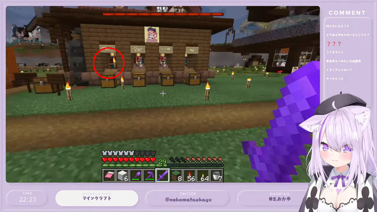 この2つの間の配信はいろはの配信のみで、この付近に立ち寄ることはなかったため、こよとおかゆの配信の間に裏で起こった襲撃者イベントによる消失の可能性がありそうです。