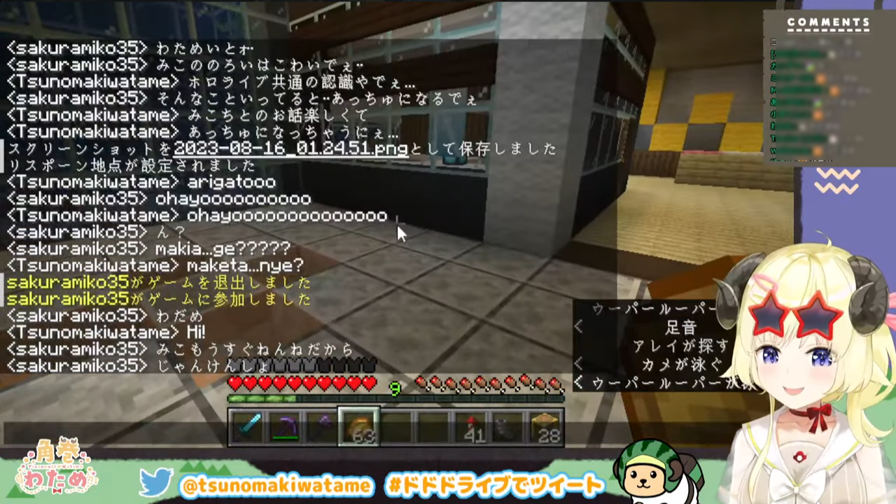 そしてわためはマイクラじゃなくてリアルにあっちゅあっちゅが多いと。